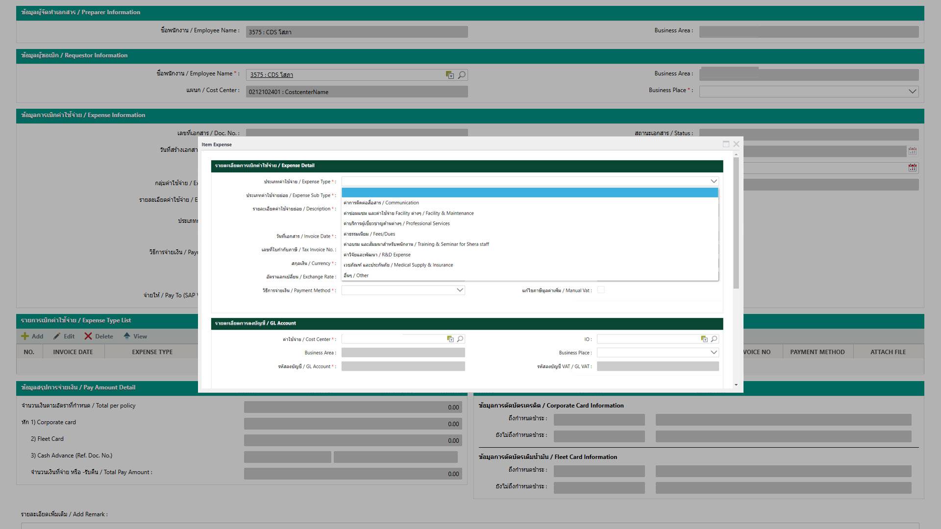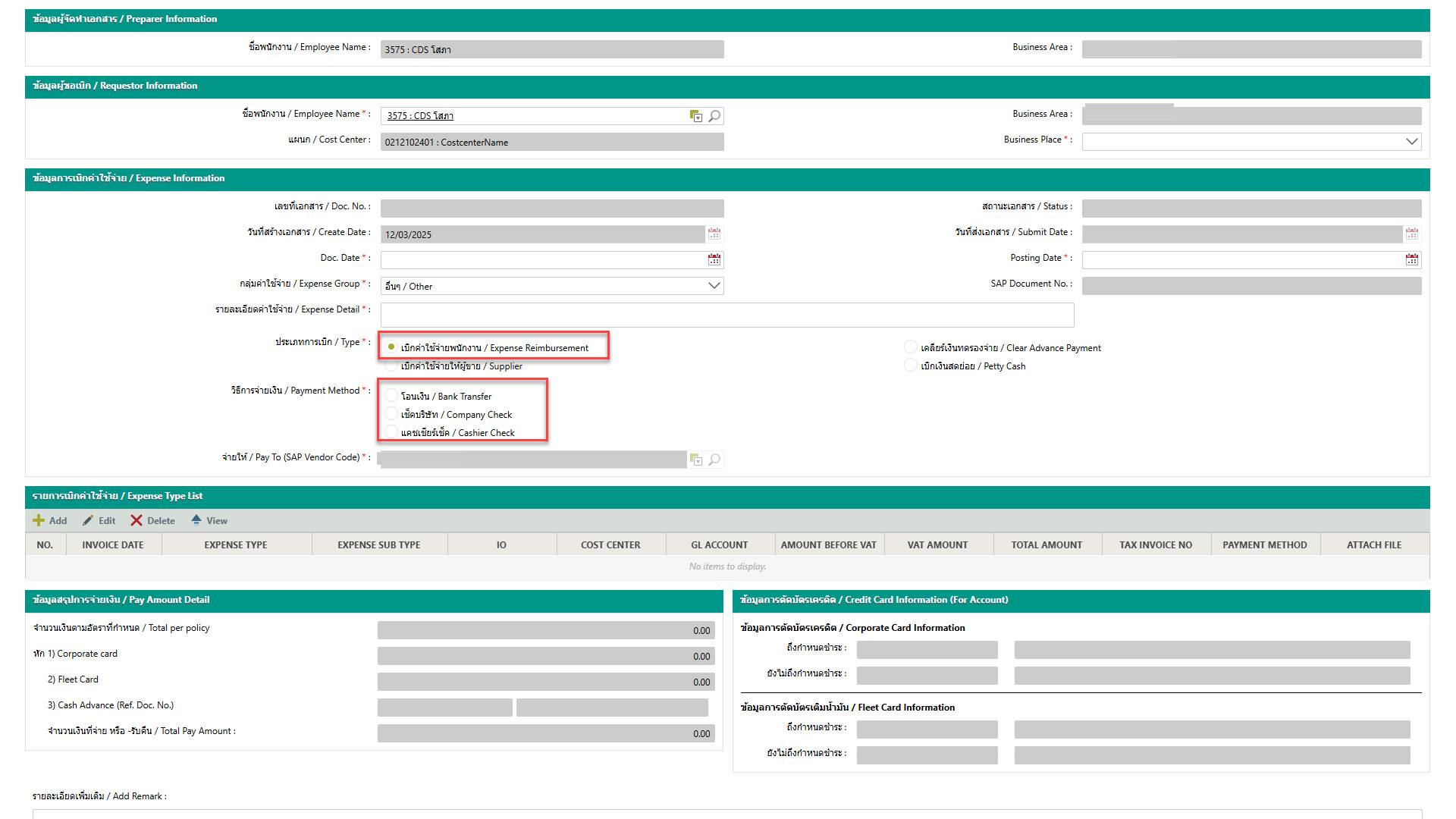 ✓   สร้างใบขอเบิกค่าใช้จ่าย เงินสดย่อย✓   สร้างใบขอเบิกค่าเดินทาง และค่าใช้จ่าย✓   สร้างใบขอเบิกเงินทดรองจ่าย✓   สร้างใบเคลียร์เงินทดรองจ่าย✓   ค้นหาเอกสาร✓   งานรอดำเนินการ✓   รายงาน