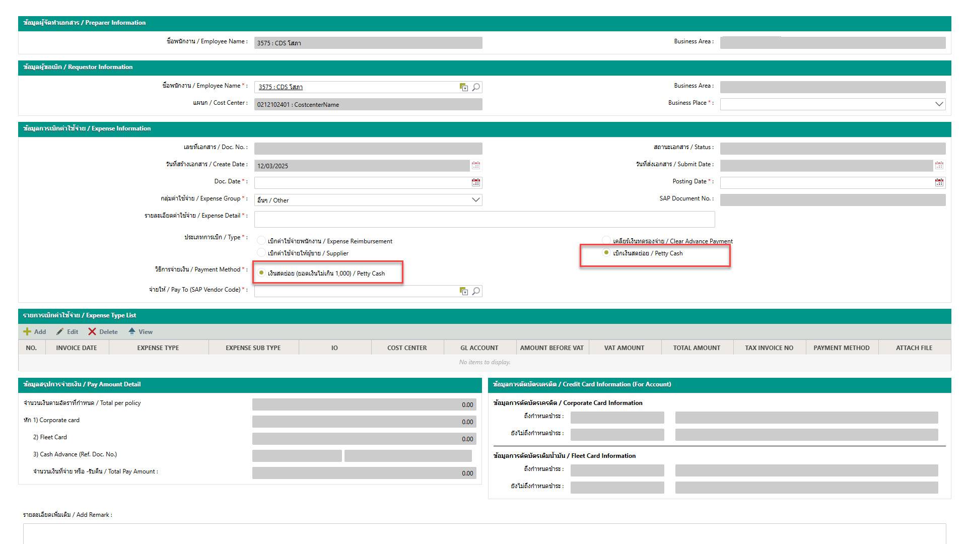 (e-Expense, Petty Cash, Advance and Clear Advance)
